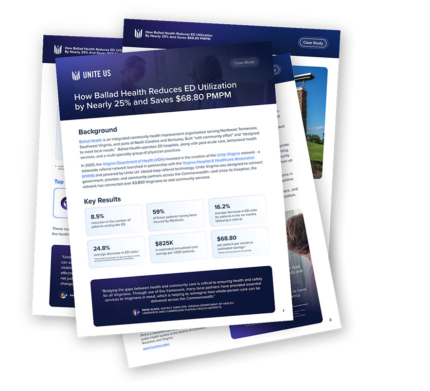 Ballad Health was one of many healthcare systems in Virginia that needed a scalable solution to streamline referrals to community-based organizations, strengthen collaboration with community partners, and measure the impact of these efforts on ED utilization.